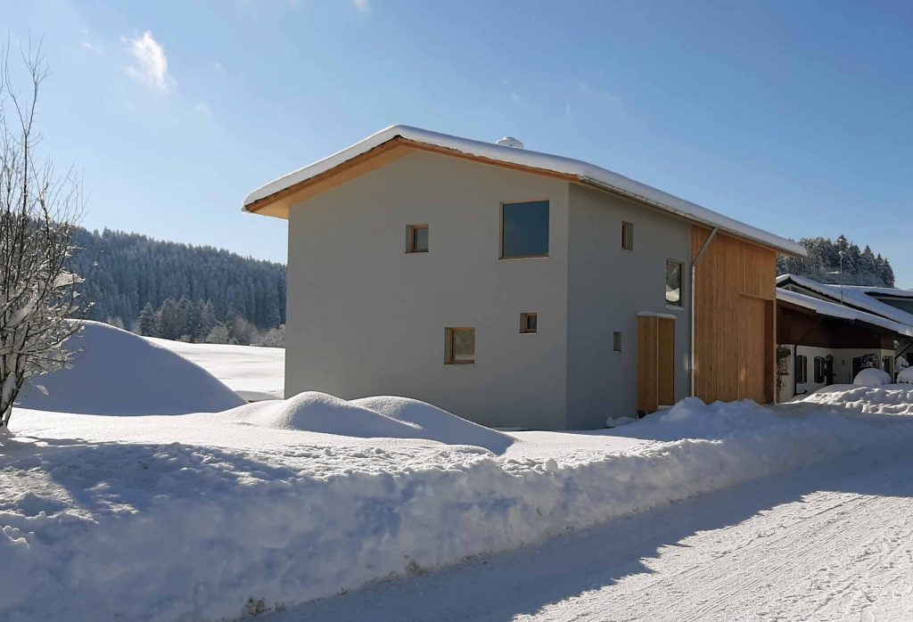 Das Gebäude ist nach den neuesten energetischen Standards in Holzbauweise errichtet und wird zu 100% mit einem Erdwärmeheizsystem versorgt. Eine PV-Anlage auf dem Dach sorgt zusätzlich für nachhaltige Stromgewinnung.